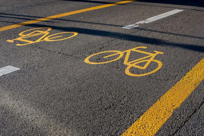 Cyclists staying safe with pavement marking plans and signs in multi-modal communities