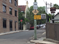 In this photo, can you see the STOP sign? The next (zoomed) photo shows just the edge of the sign protruding past the building line. Again, the stop line and holding line is badly faded. Would the CAV know how to proceed?